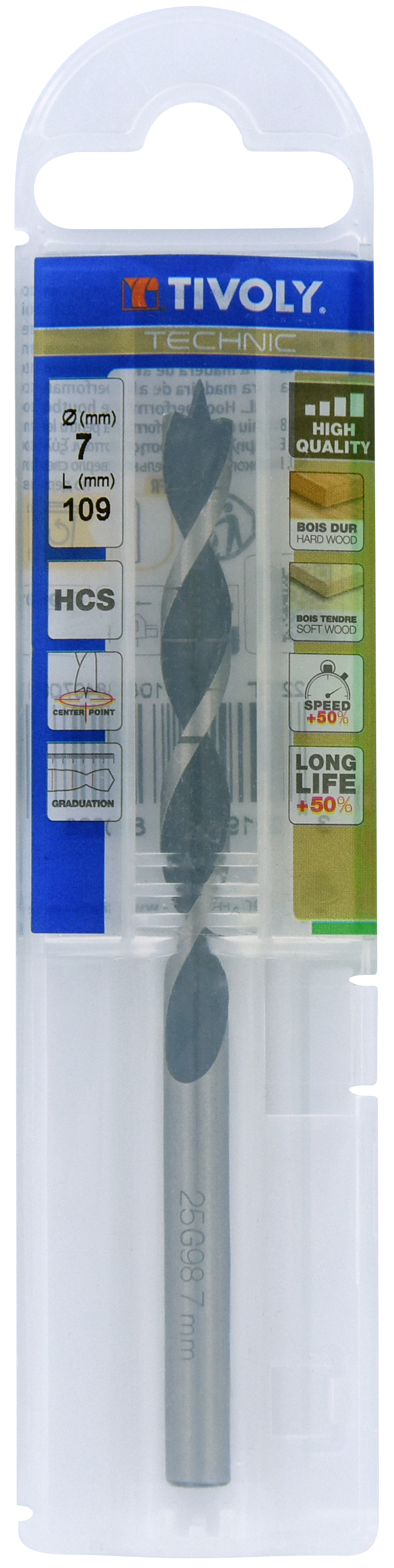 Foret bois 3 pointes -Queue cylindrique -Gradué SLR / L: 109 Ø: 7 TIVOLY - 10863840700
