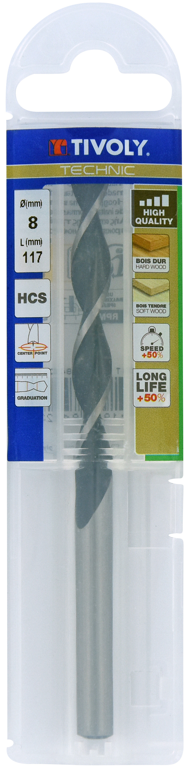 Foret bois 3 pointes -Queue cylindrique -Gradué SLR / L: 117 Ø: 8 TIVOLY - 10863840800