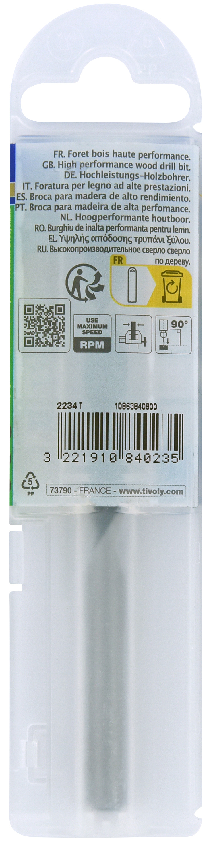 Pour une utilisation efficace, il est recommandé d'utiliser ce foret dans une perceuse appropriée, en veillant à choisir la vitesse adéquate pour le type de bois. Ses goujures à grand dégagement permettent un excellent rendement, facilitant l'évacuation des copeaux pour un perçage plus fluide.