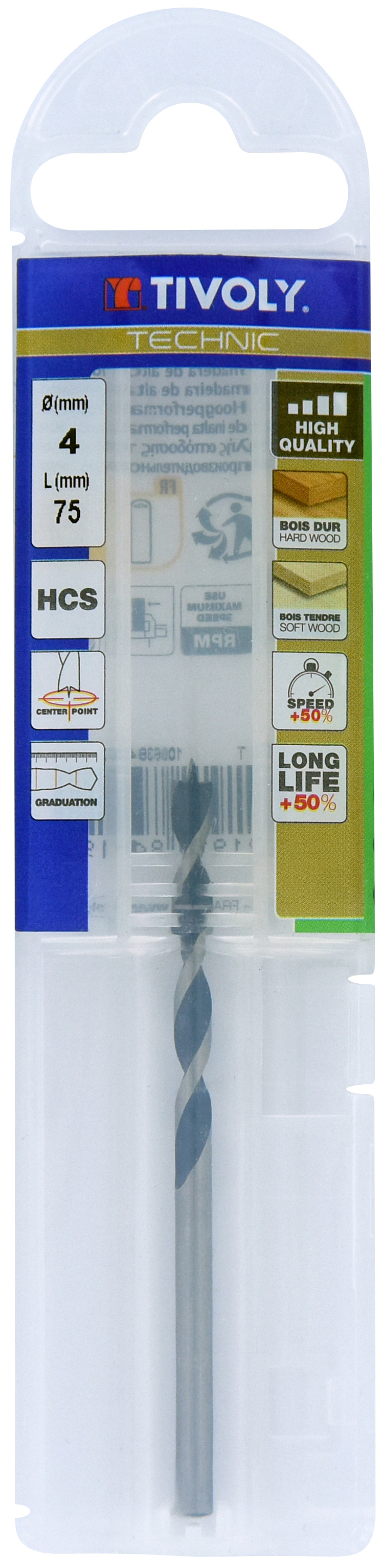 Découvrez Foret bois 3 pointes -Queue cylindrique -Gradué SLR / L: 75 Ø: 4 TIVOLY - 10863840400 disponible à l'achat