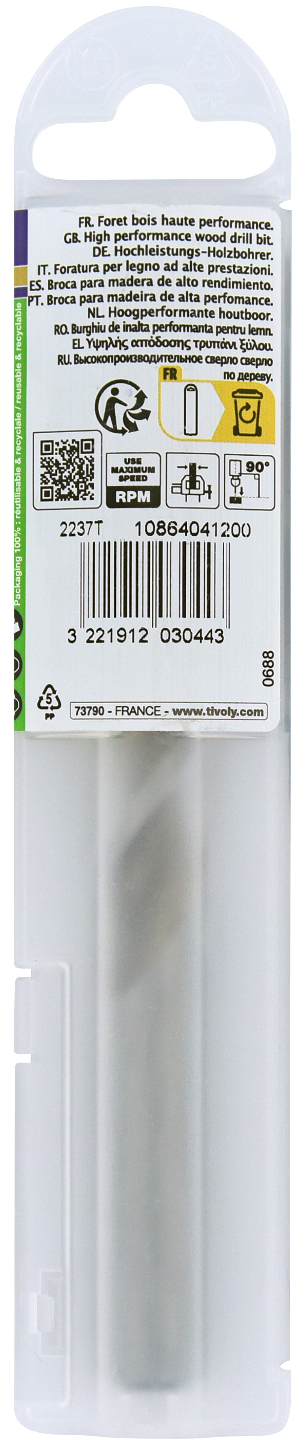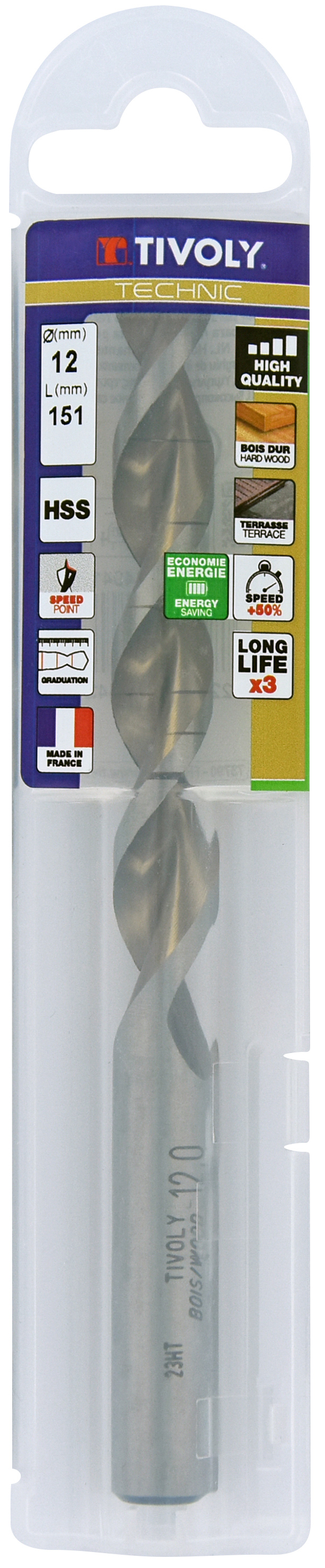 Foret bois HSS -Affûtage Speed point - Queue à 3 méplats -Gradué SLR / L: 151 Ø: 12 TIVOLY - 10864041200