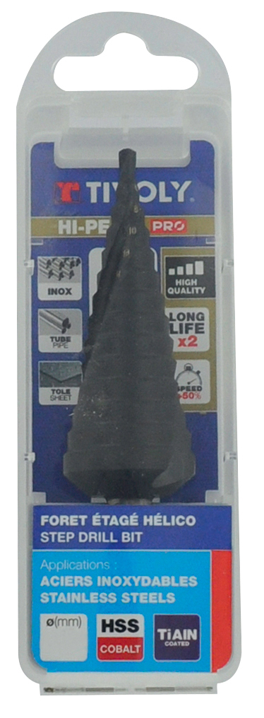 Découvrez Foret conique étagé HSS-E5 -Revêtu TiAlN -TivolyNorm -Hélicoïdal -Pointe en croix -Queue à 3 méplats / ØMin/Max : 4/30 TIVOLY - 11448720430 disponible à l'achat
