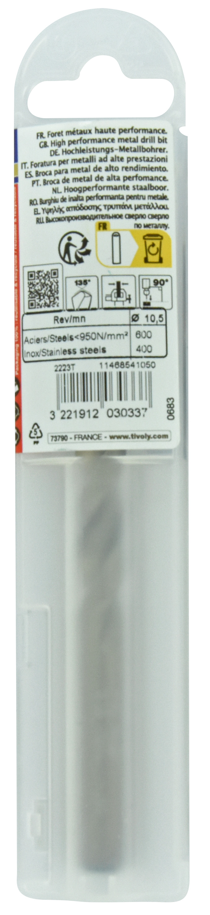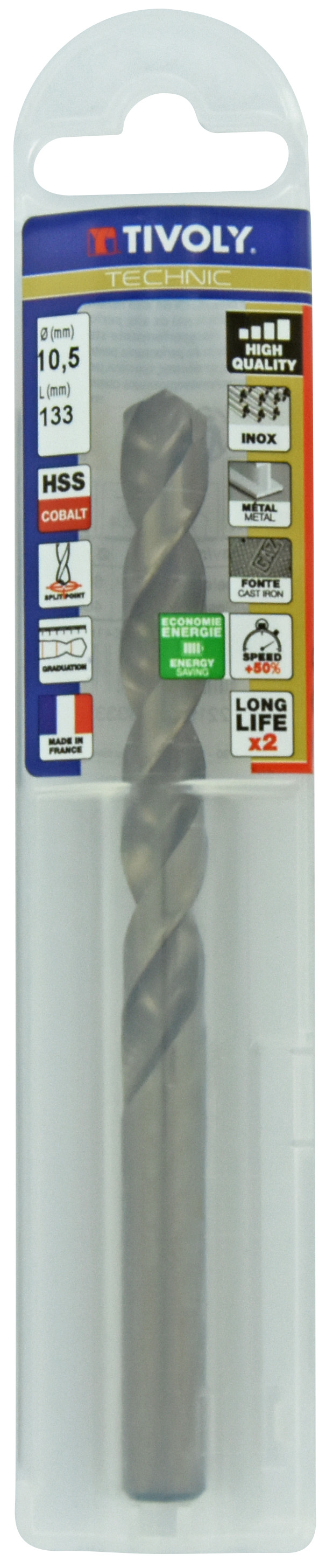 Découvrez Foret métaux HSS-E5 -Revêtu GOLD -DIN338 -h8 -Pointe en croix -Gradué SLR Ø: 10.5 L: 133 TIVOLY - 11468541050 disponible à l'achat