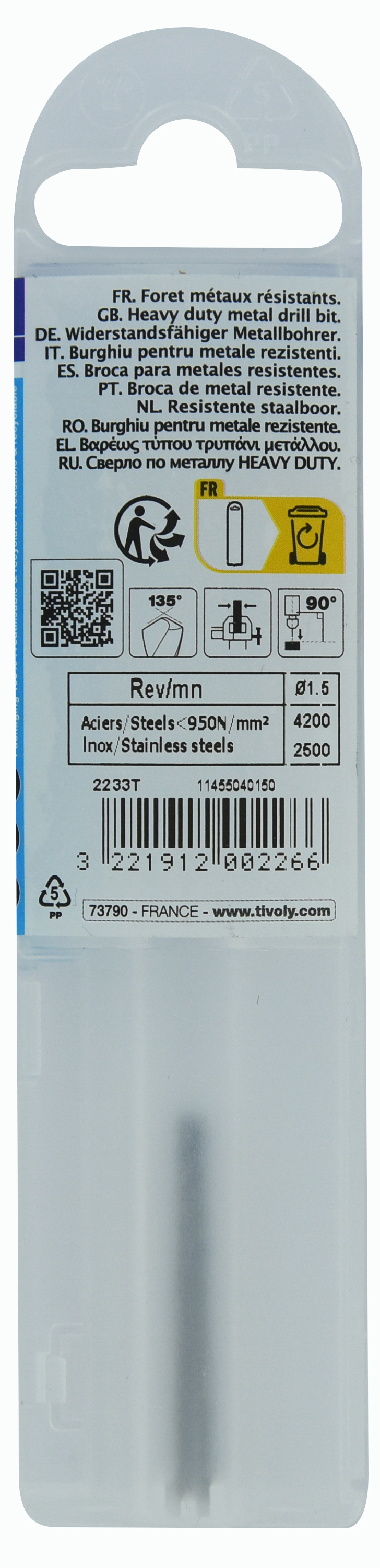 Découvrez Foret métaux HSS-E5 -Revêtu GOLD -DIN338 -h8 -Pointe en croix Ø: 1.5 L: 40 TIVOLY - 11455040150 disponible à l'achat