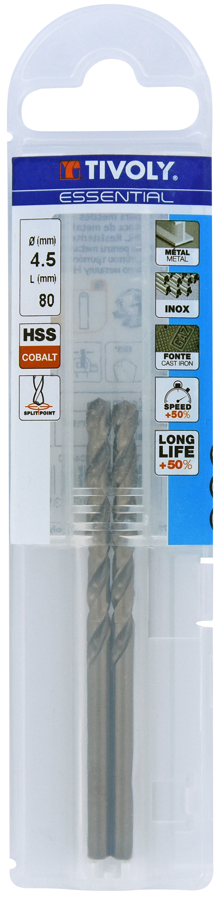 Découvrez Foret métaux HSS-E5 -Revêtu GOLD -DIN338 -h8 -Pointe en croix Ø: 4.5 L: 80 TIVOLY - 11455040450 disponible à l'achat