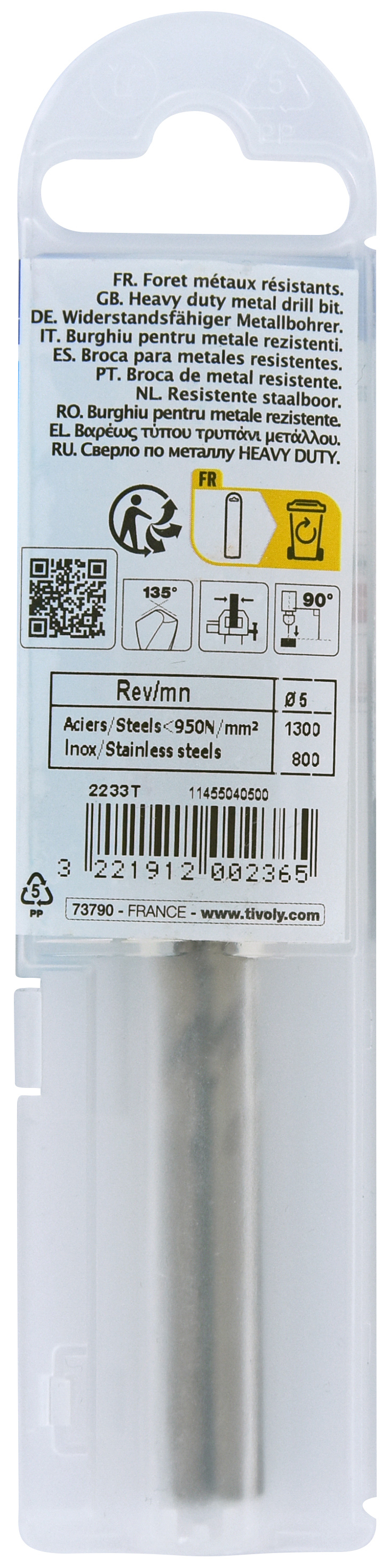 Découvrez Foret métaux HSS-E5 -Revêtu GOLD -DIN338 -h8 -Pointe en croix Ø: 5 L: 86 TIVOLY - 11455040500 disponible à l'achat