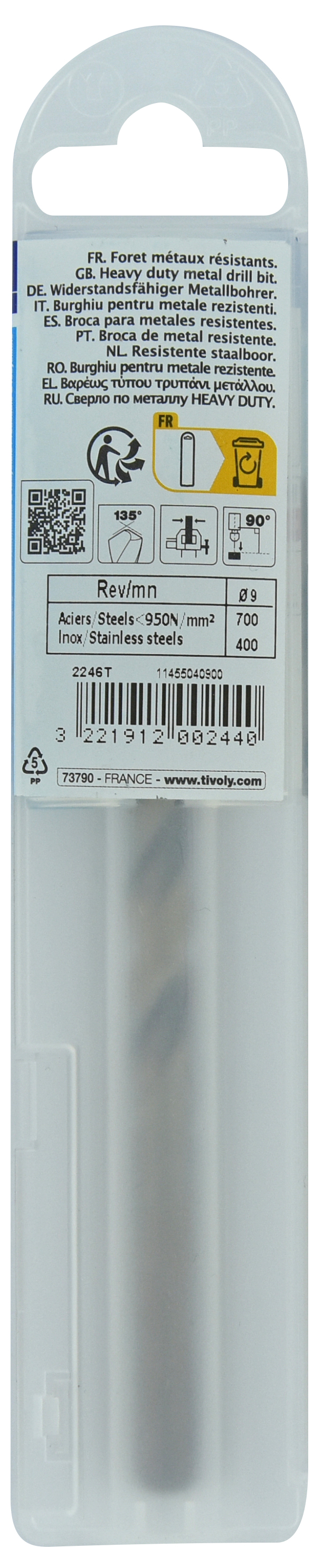 Foret métaux HSS-E5 -Revêtu GOLD -DIN338 -h8 -Pointe en croix Ø: 9 L: 125 TIVOLY - 11455040900