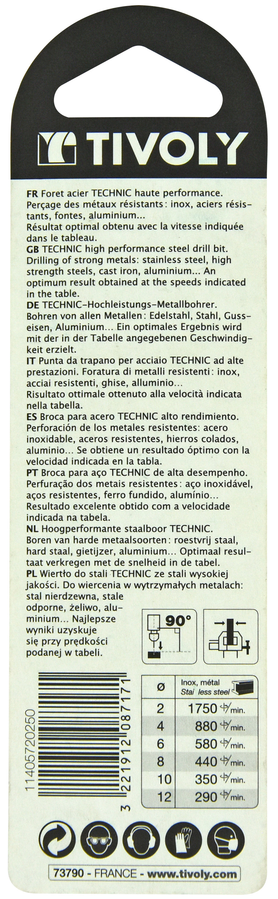 Foret métaux HSS-E5 -Revêtu GOLD -DIN340 -h8 -Série longue -Pointe en croix Ø: 2.5 L: 95 TIVOLY - 11405720250