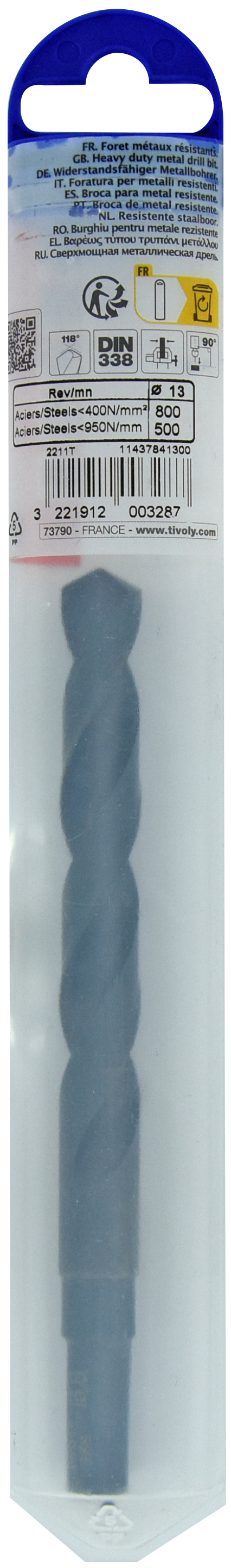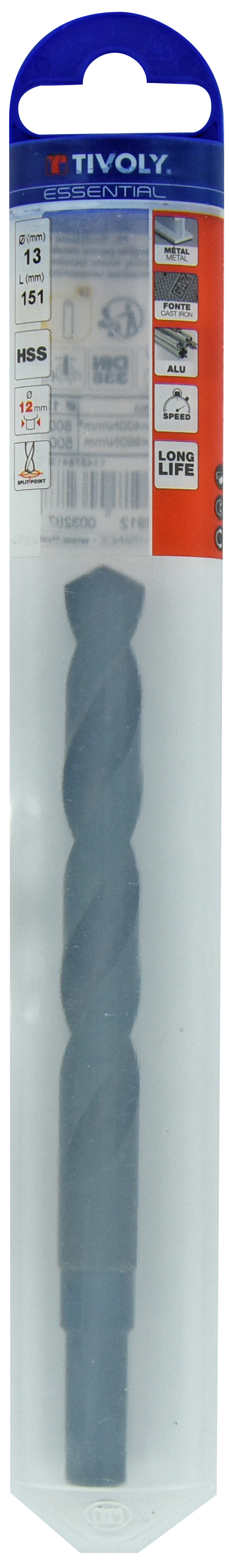 Foret métaux T taillé meulé HSS -DIN338 -h8 -Pointe en croix -Queue réduite Ø: 13 L: 151 TIVOLY - 11437841300