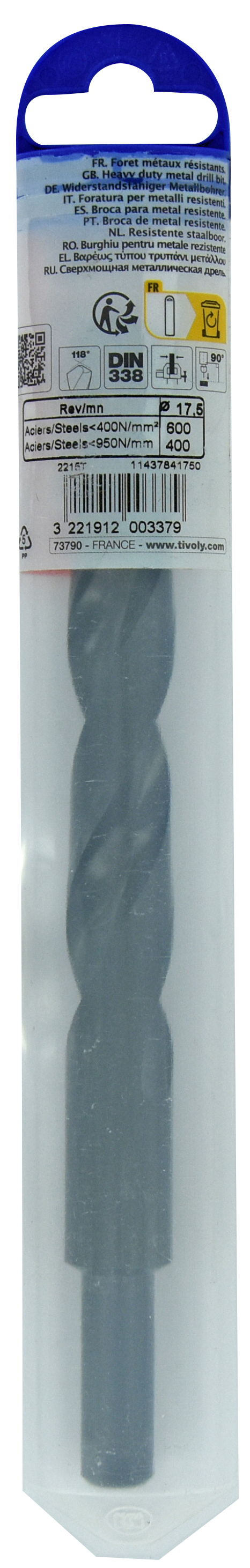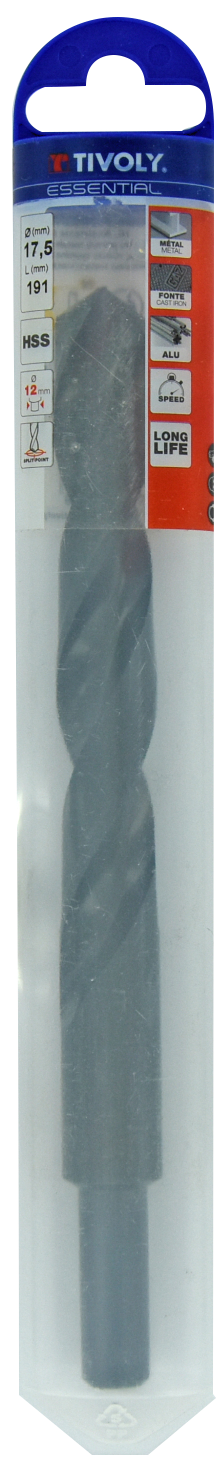 Foret métaux T taillé meulé HSS -DIN338 -h8 -Pointe en croix -Queue réduite Ø: 17.5 L: 191 TIVOLY - 11437841750