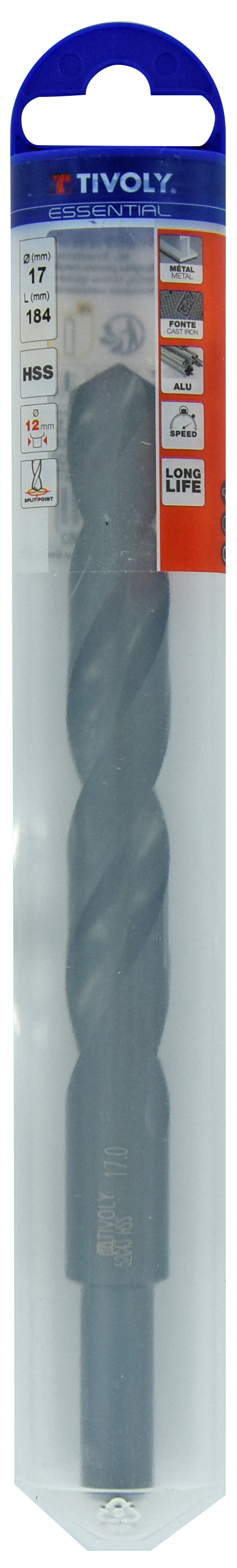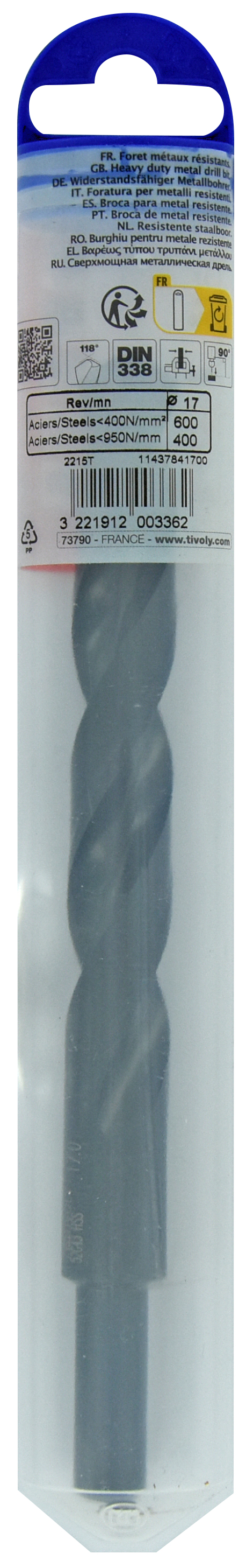 Foret métaux T taillé meulé HSS -DIN338 -h8 -Pointe en croix -Queue réduite Ø: 17 L: 184 TIVOLY - 11437841700