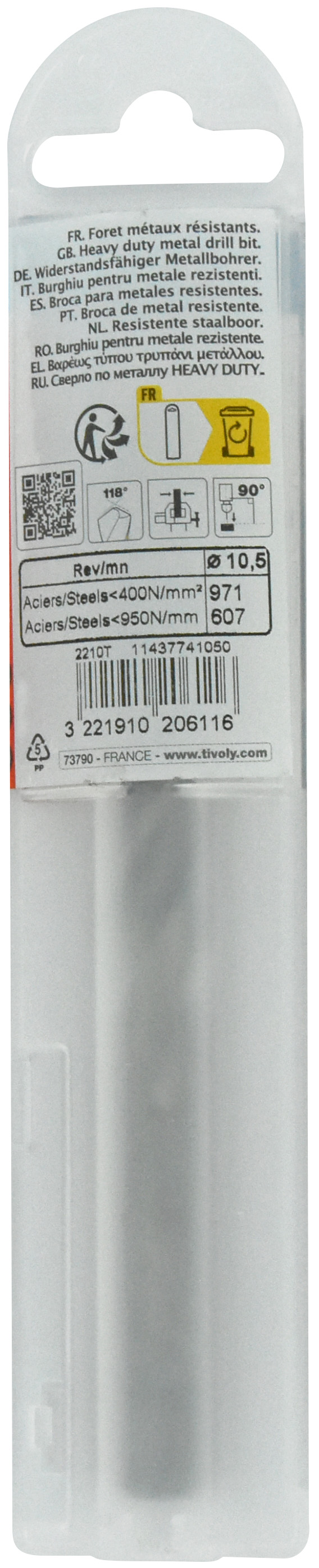 Foret métaux taillé meulé HSS -DIN338 -h8 -Pointe en croix Ø: 10.5 L: 133 TIVOLY - 11437741050