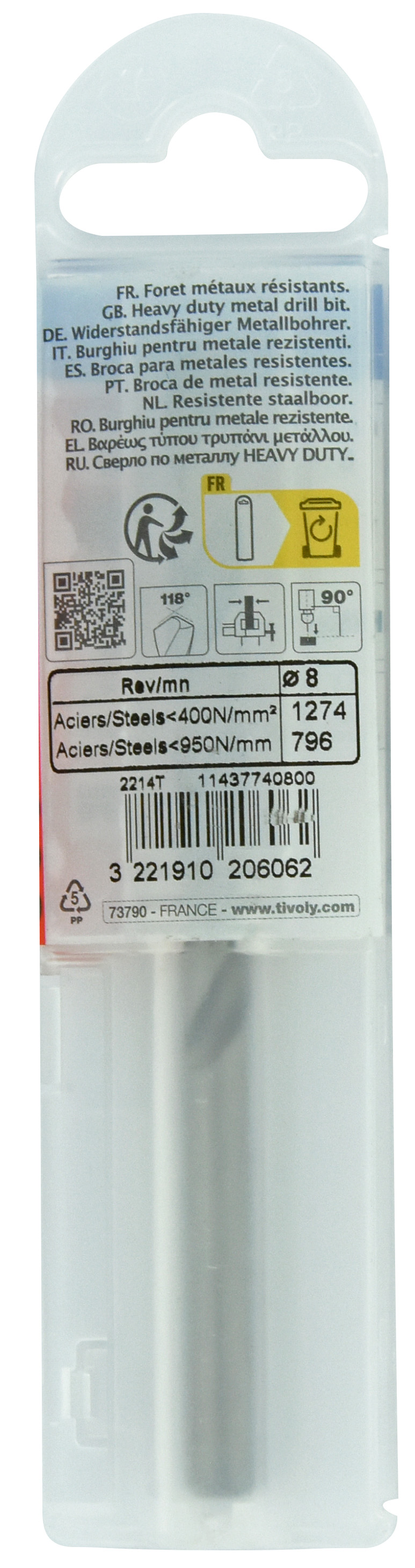 Ce foret se distingue par plusieurs caractéristiques techniques : il est taillé et meulé selon les normes DIN338, avec une pointe en croix pour améliorer la pénétration initiale dans le matériau. Avec un diamètre de 8 mm et une longueur de 117 mm, il s’adapte parfaitement à divers projets professionnels et bricolages.