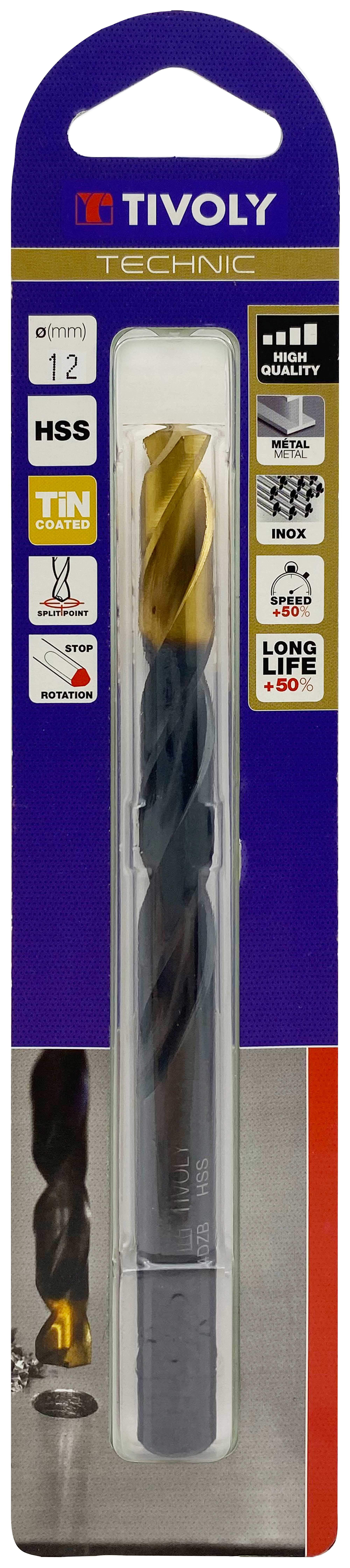 Foret métaux taillé meulé HSS -Revêtu en bout TiN -DIN338 -h8 -Pointe en croix -Queue à 3 méplats Ø: 12 L: 151 TIVOLY - 11453121200