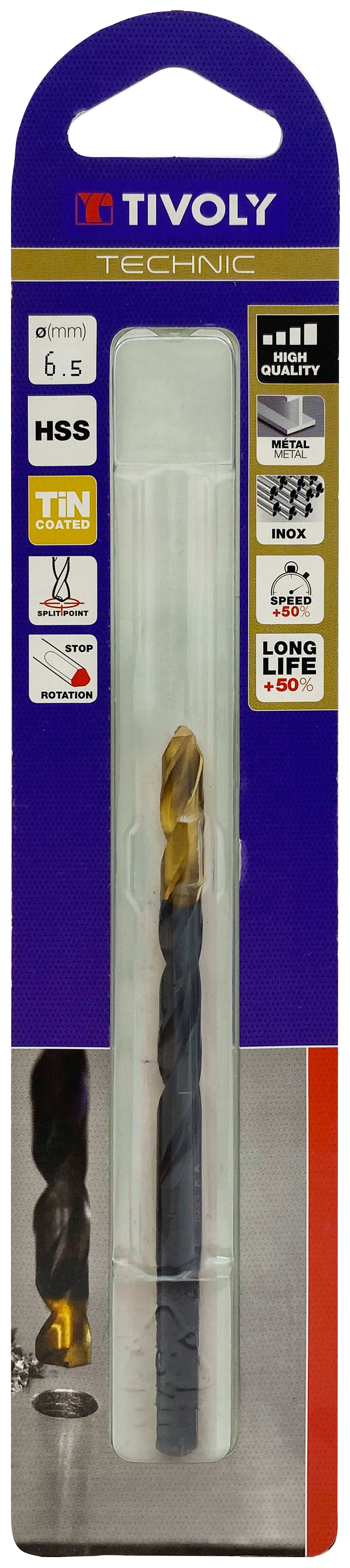 Foret métaux taillé meulé HSS -Revêtu en bout TiN -DIN338 -h8 -Pointe en croix -Queue à 3 méplats Ø: 6.5 L: 101 TIVOLY - 11453120650