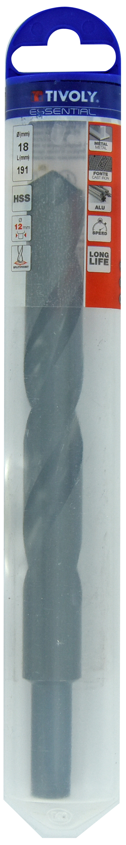 Foret métaux taillé meulé HSS -Revêtu STEAM -DIN338 -h8 -Queue réduite Ø: 18 L: 191 TIVOLY - 11436841800