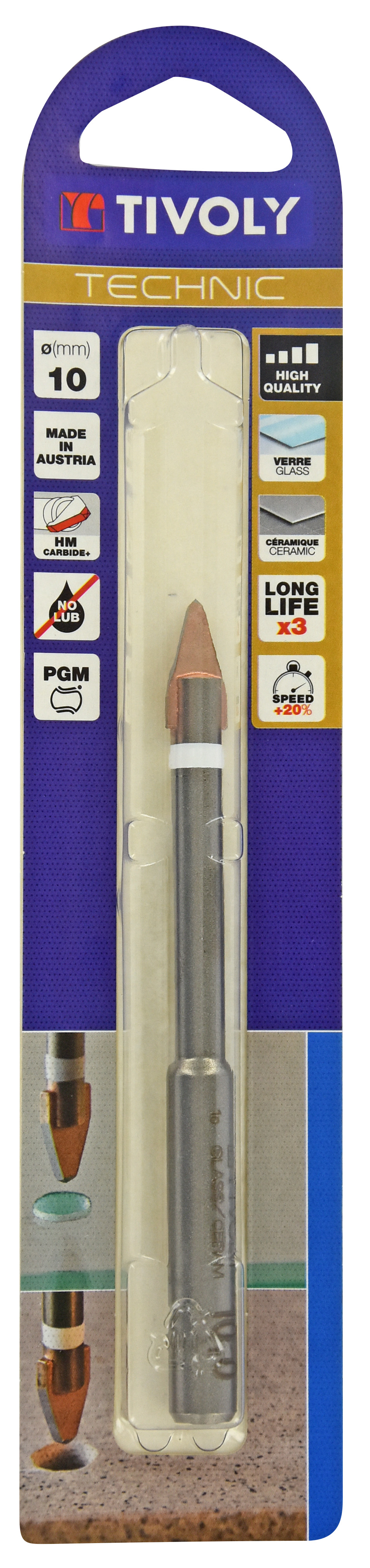 Foret verres -Plaquette carbure High Quality -Queue hexagonale renforcée / L: 120 Ø: 10 TIVOLY - 12001121000