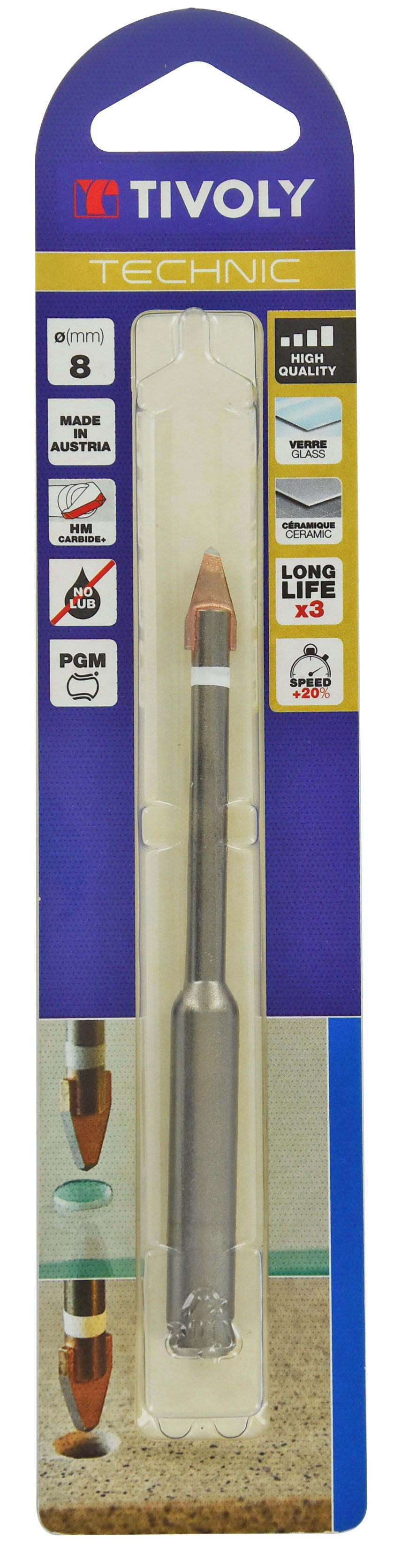 Foret verres -Plaquette carbure High Quality -Queue hexagonale renforcée / L: 120 Ø: 8 TIVOLY - 12001120800