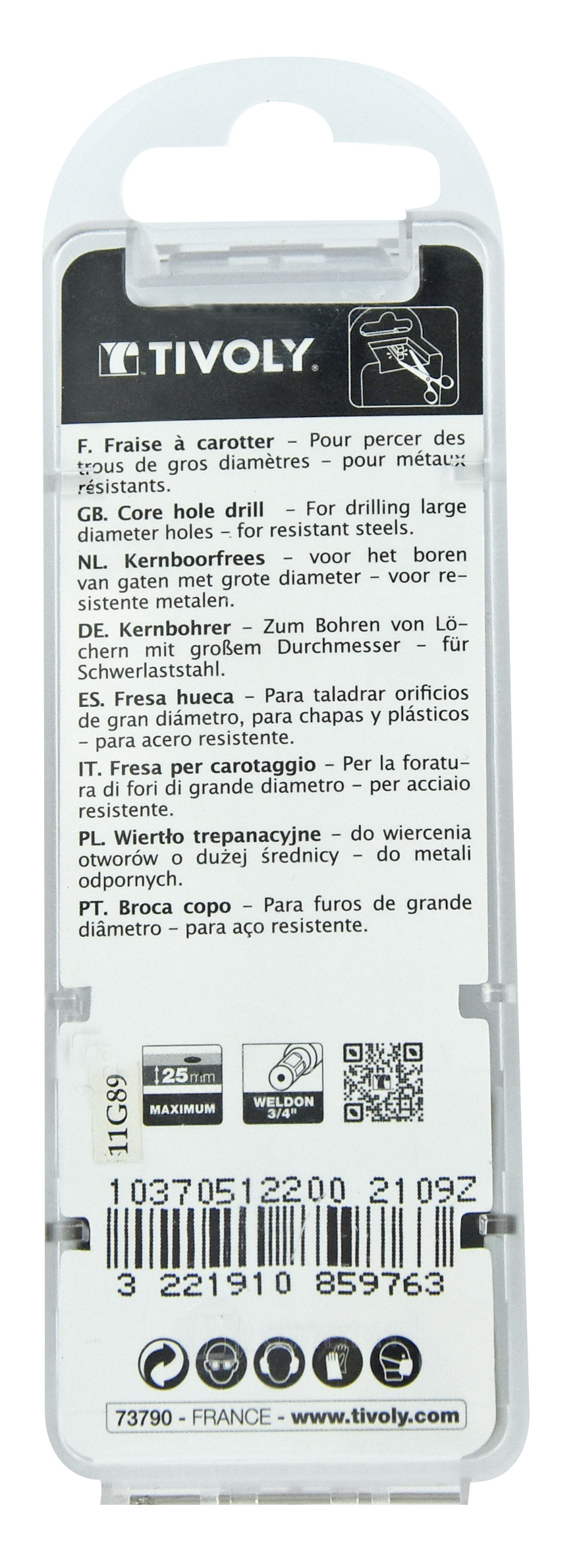 Fraise à carotter HSS - Série courte - Weldon (Tube brochable) TIVOLY - 10370512200