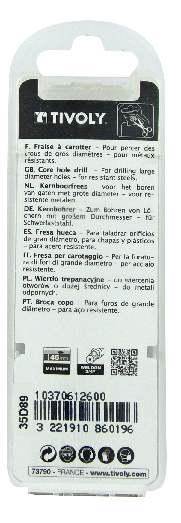 Découvrez Fraise à carotter HSS - Série longue - Weldon (Tube brochable) TIVOLY - 10370611800 disponible à l'achat