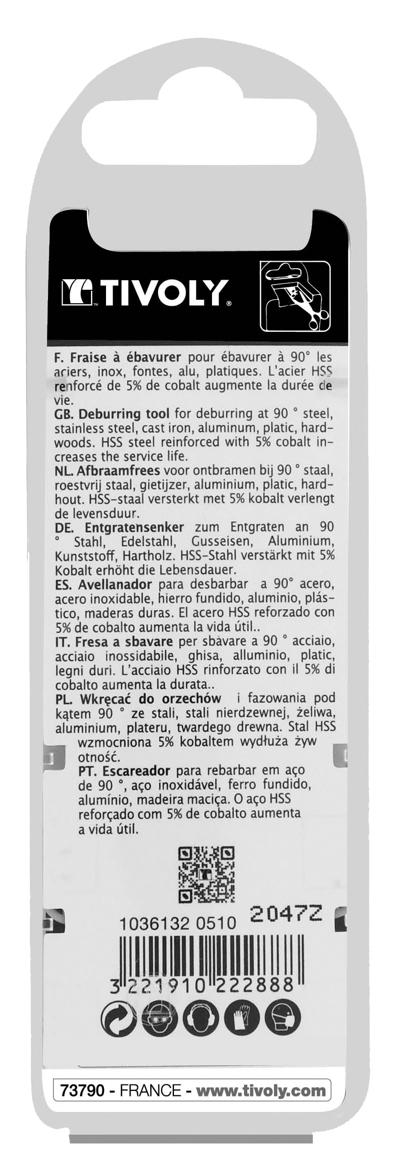 Découvrez Fraise à ébavurer à trou 90° HSS-E5 -TivolyNorm -Queue cylindrique / Ø: 5-10 / L: 48 TIVOLY - 10361320510 disponible à l'achat