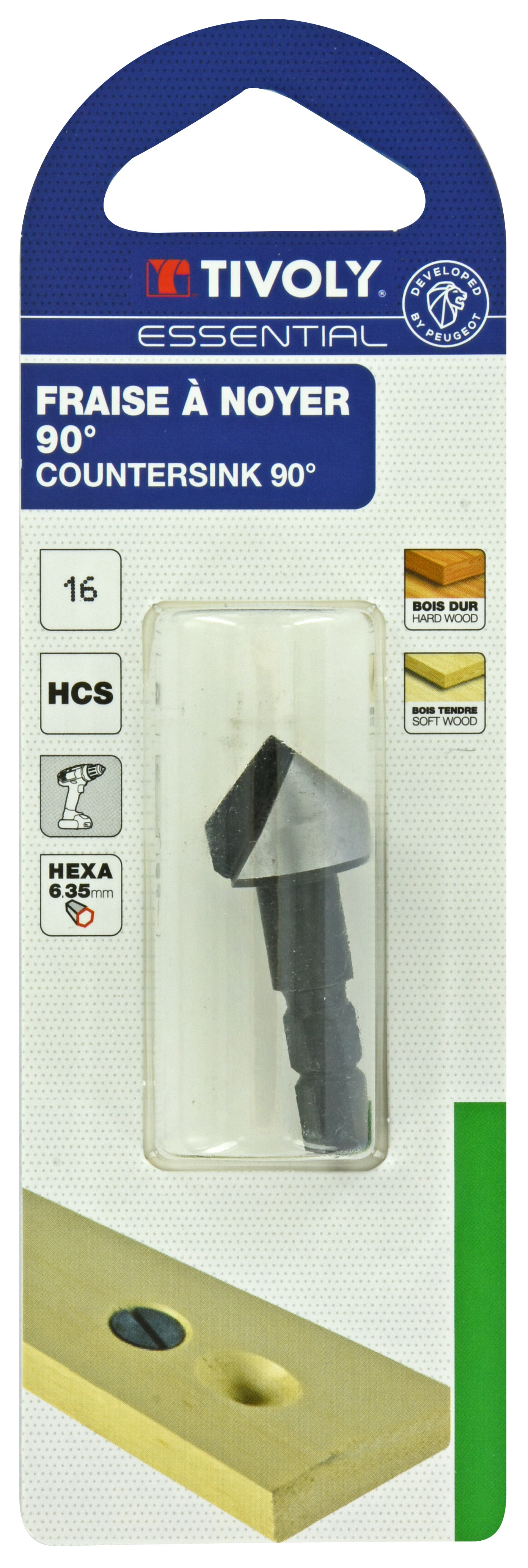 Fraise à noyer acier au carbone à 90° -Queue hexagonale -special bois / Ø: 16 / L: 42 TIVOLY - XT60612045216