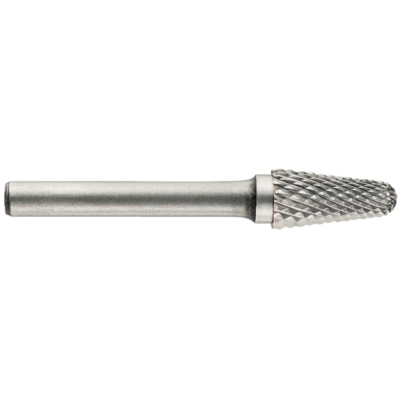 Fraise lime carbure cconique à rayon denture normale pour des travaux soignés dans la pluspart des matériaux grâce à son substrat et sa géométrie de denture diamantée.
