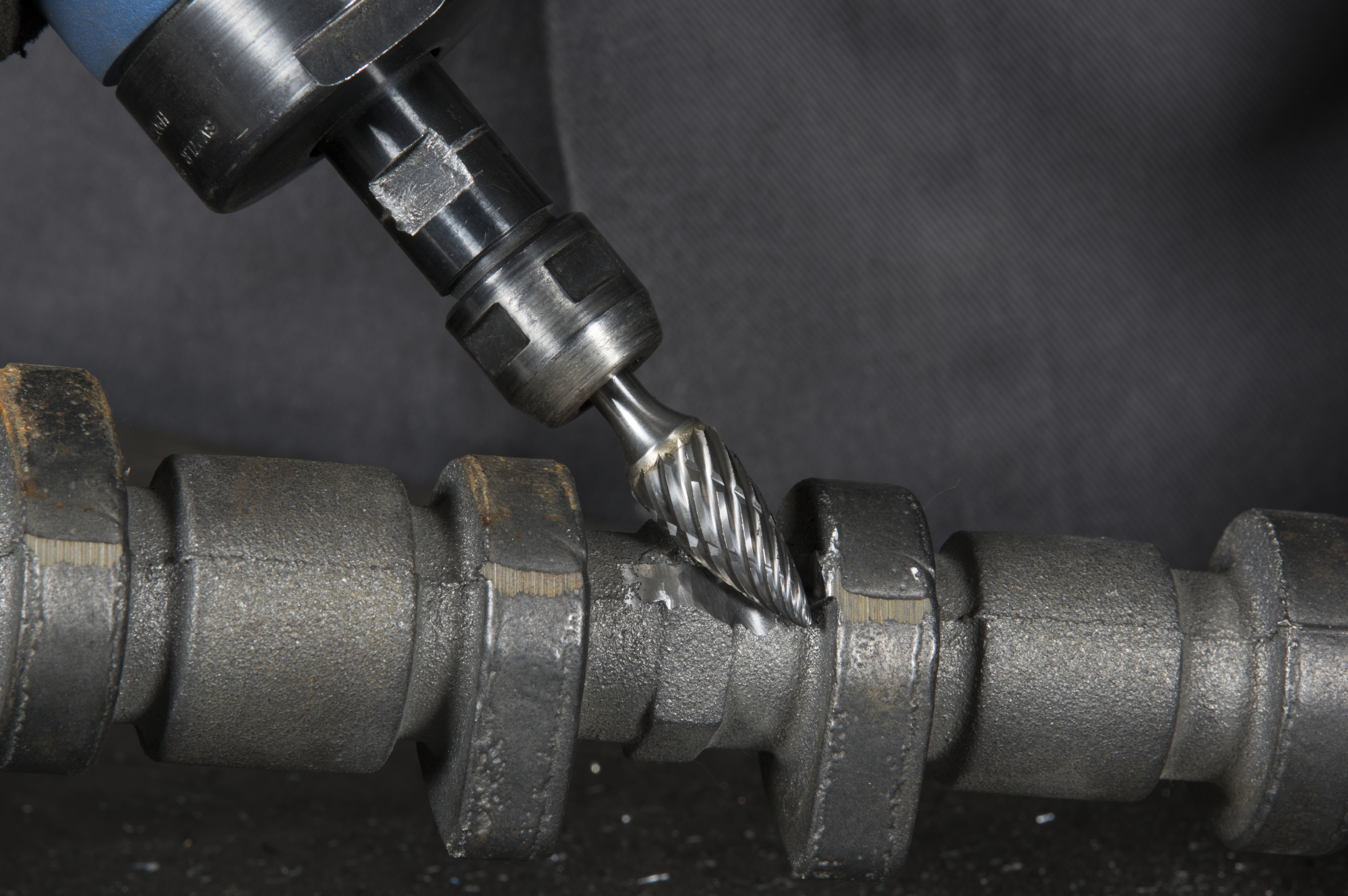 La fraise HF 100 G avec tige de fraisage en ogive dotée d'une pointe aplatie est idéale pour casser des arêtes. La fraise en carbure de tungstène offre une excellente performance d'enlèvement de matière et de longues durées de vie, pour l'ébavurage d'alésages et l'usinage d'angles aigus également.