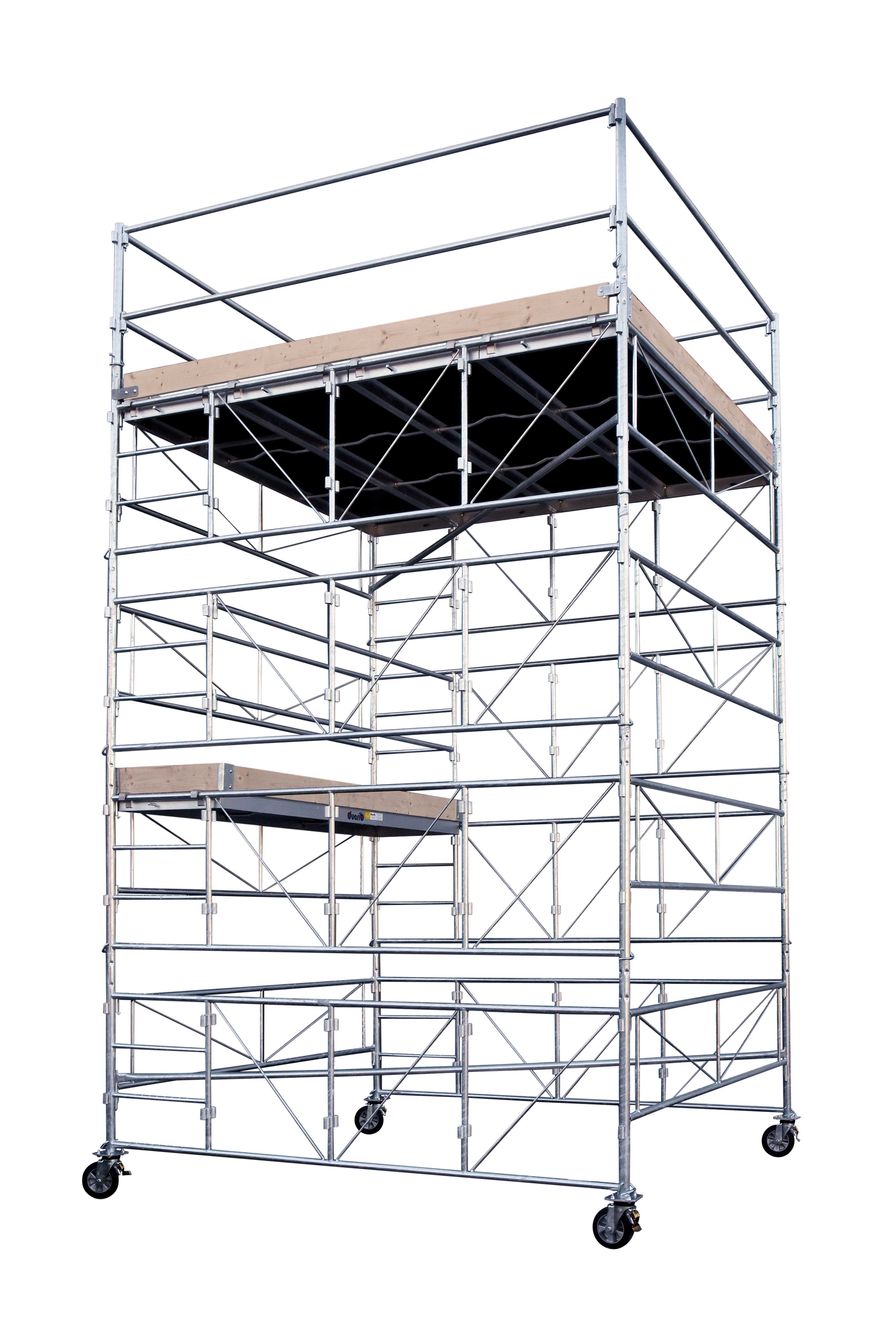 - Échafaudage à trois niveaux pour un travail en hauteur sécurisé.