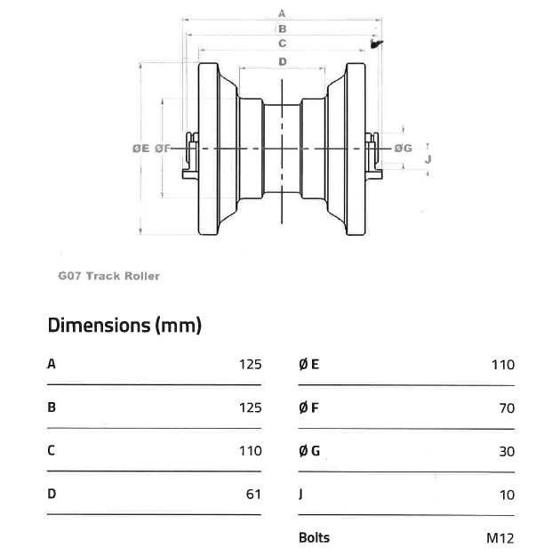 - Utilisé comme galet inférieur dans les systèmes de chenilles pour assurer le support et la rotation des chenilles sur les engins.