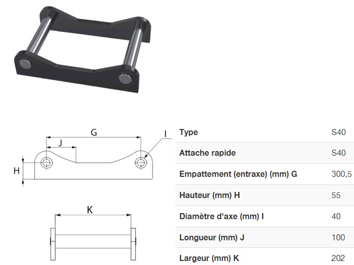 - Godet de 300 mm pour attachement S40.