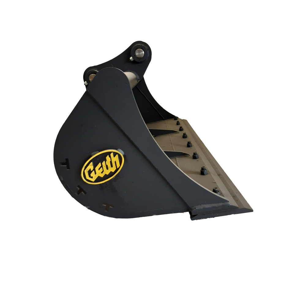 Godets de curage Geith disponibles pour mini pelles et midi pelles. La gamme Geith vous offre un large choix de godets de curage, largeur du godet comprise entre 800 mm et 2400m. Le godet de curage Geith à usage sévère est polyvalent grâce à un système d’axes qui correspond aux exigences du métier. Il a été conçu pour convenir à la cinématique de votre machine afin d’optimiser l’ouverture et la fermeture complète de votre godet pour le chargement de matériel. Deux options d’équipement : lame ou lame boulonnées. Afin d’optimiser la durée de vie de votre godet de curage Geith les côtés latéraux et le fond du godet sont renforcés. Pour une productivité optimum, les oreilles des godets de terrassement pour mini pelles Geith sont conçues aux dimensions de chaque machine afin d’optimiser les angles de rotation. Vous gagnerez ainsi du temps et une réduction de votre consommation de carburant. La forme conique des godets Geith réduit l’usure et la traînée pour des cycles plus rapide.