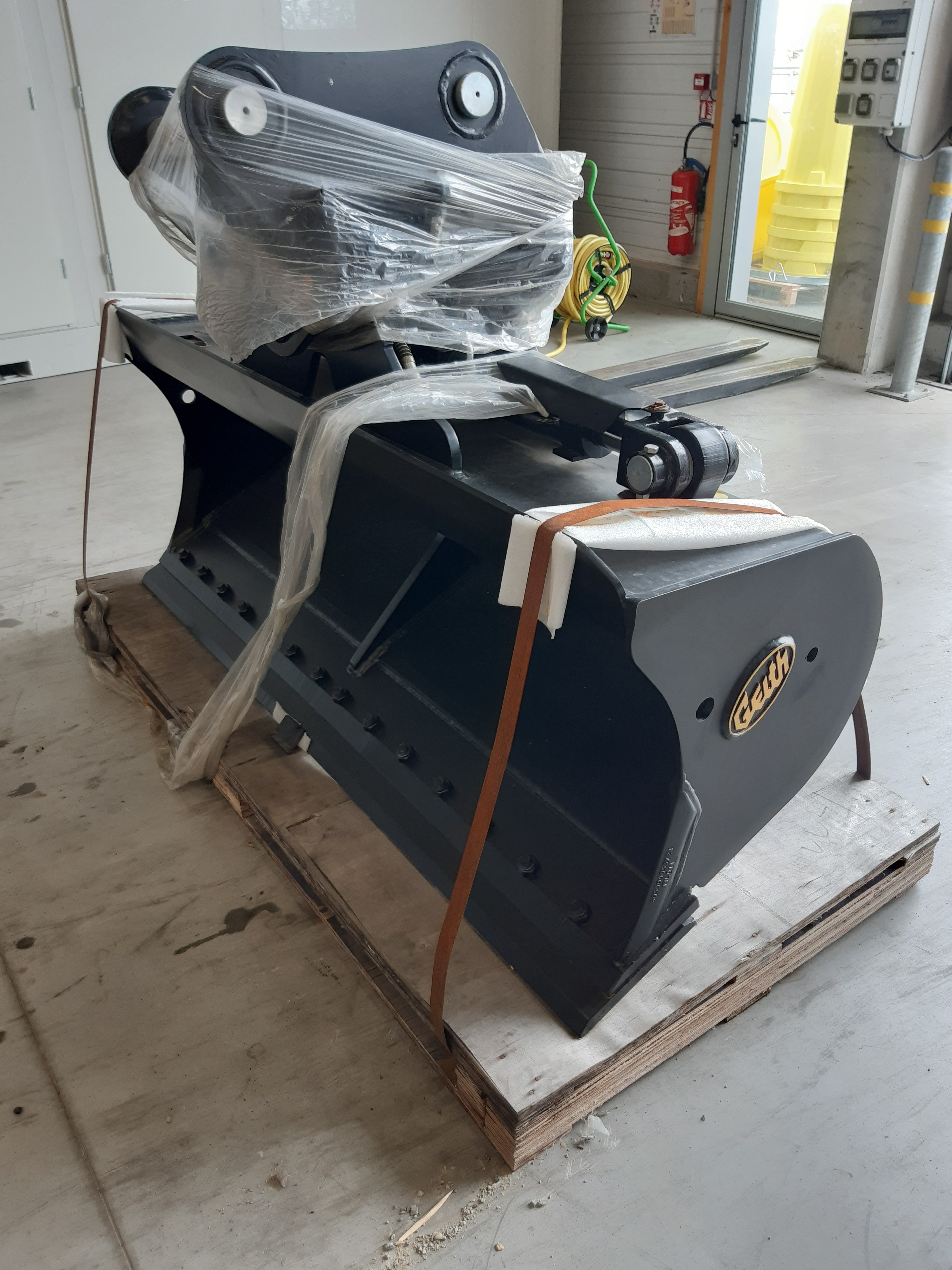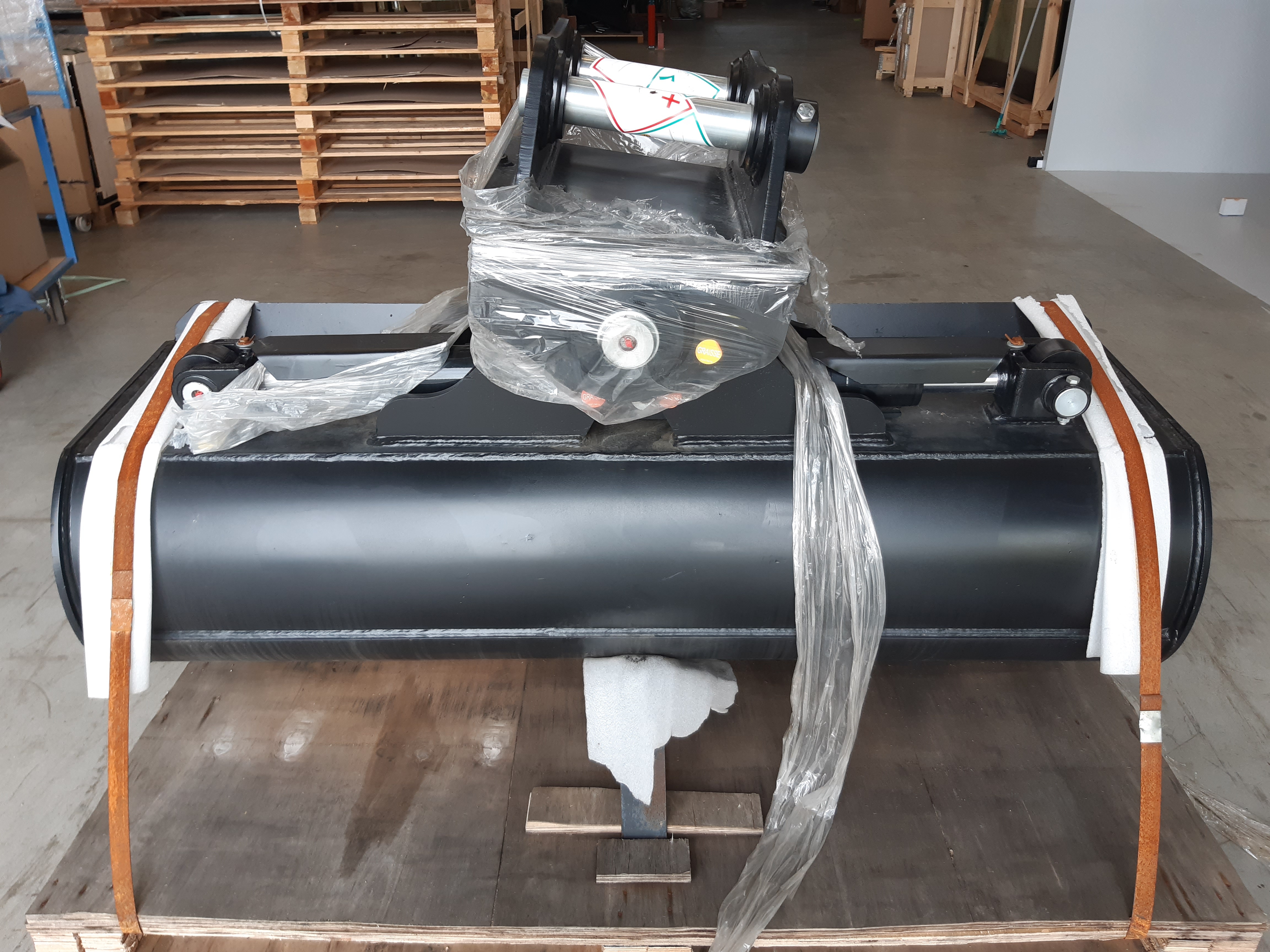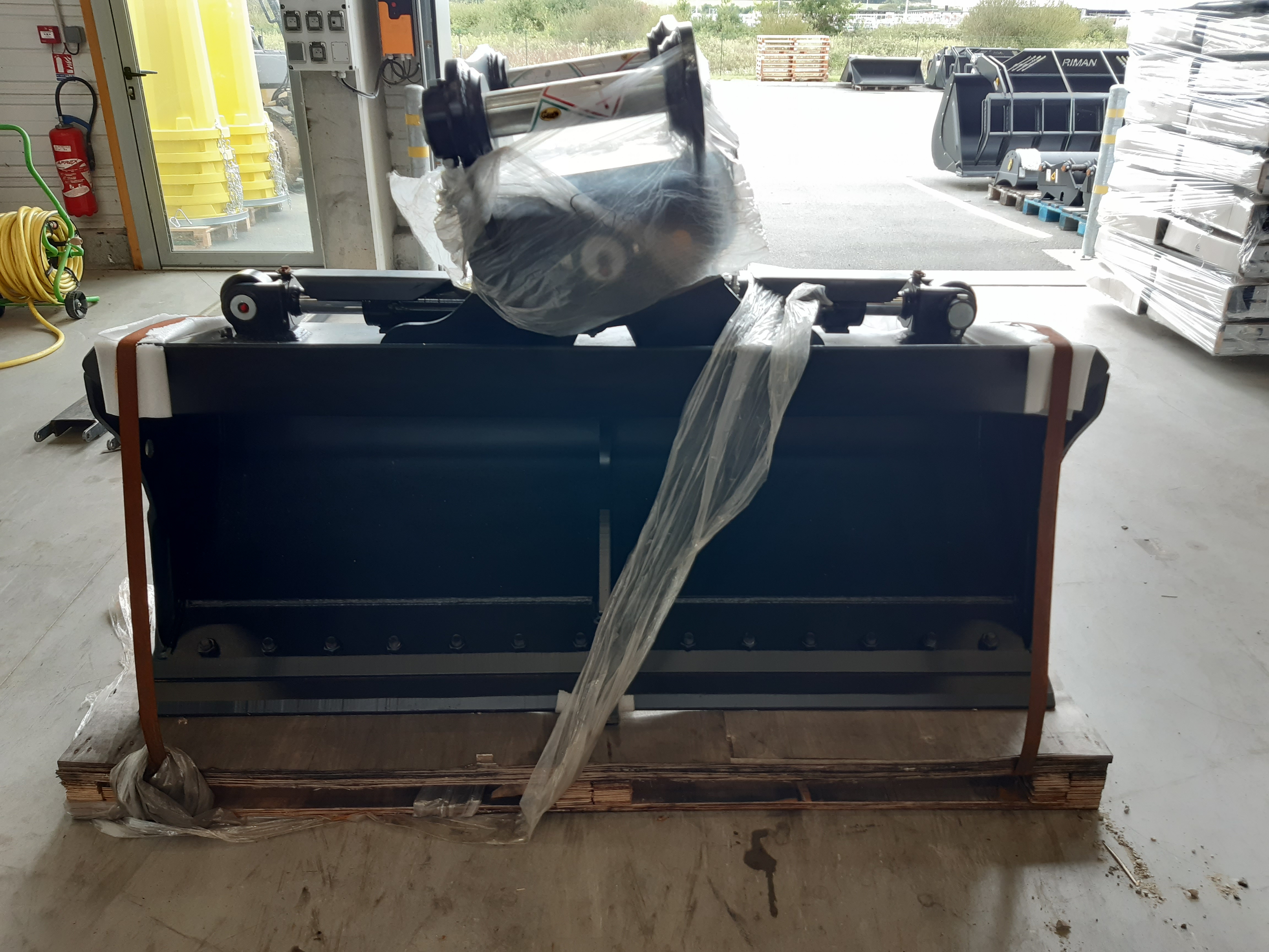 Godet adaptablé pour des machines de 2 à 29 tonnes Un dispositif pivotant optimal permet d’obtenir une inclinaison à 90° (45° dans chaque direction). Deux vérins hydrauliques robustes dotés de tiges durcies permettent d’atteindre une excellente force de rétention. Des protections contre les déversements et des protections de vérin protègent la tige du vérin et les raccords hydrauliques. Équipé de régulateurs de débit pour un réglage facile de la vitesse d’inclinaison, il s’adapte aux préférences de travail de chacun (disponible à partir des pelles de 11 tonnes)