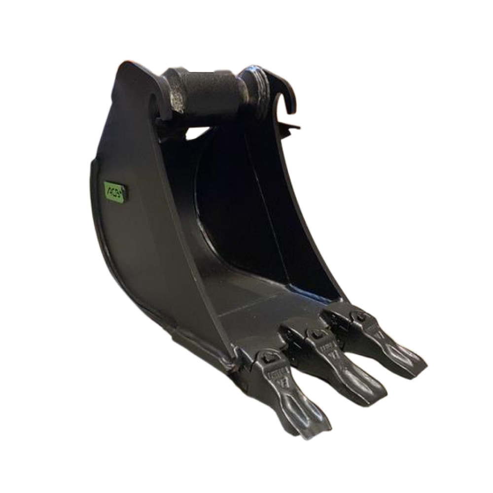 Le godet est équipé de trois dents robustes qui facilitent la pénétration dans les sols compacts, pierreux ou argileux. Cette configuration permet un remplissage efficace du godet en limitant l’effort nécessaire pour creuser.
