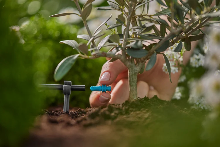 La tête goutte-à-goutte Endline permet une irrigation ponctuelle et économe en eau grâce au débit d’application de 2 litres d’eau par heure.