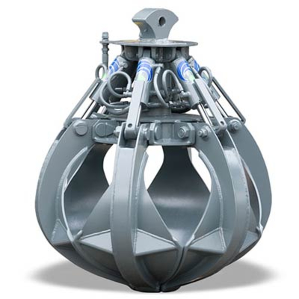 Les grappins à ferraille sont dispositifs de préhension multi-griffes. Chaque dent est mise en mouvement par un vérin hydraulique à double effet. Pour ca, les coquilles ont un mouvement d’ouverture et fermeture synchrone, mais indépendant. Le nombre de dent peut varier de quatre à six. Cette caractéristique rend les grappins particulièrement adaptés à la collecte et à la manutention de grandes quantités de matériaux en vrac comme la ferraille, le papier, les pneus, les déchets et le bois de chauffage. Ils sont adapté aux camions-grues, mini pelles, grues fixes, pelles hydrauliques et industrielles.