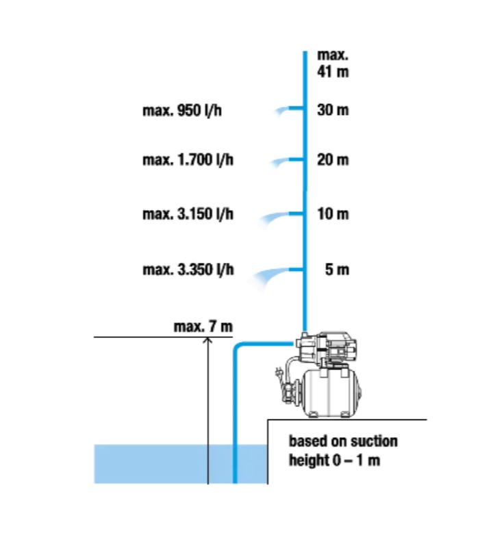 Ce modèle offre un débit maximal de 3700 litres par heure, une puissance de 800 watts, et une pression pouvant atteindre 4,1 bars, avec un réservoir de 19 litres équipé d'une membrane de haute qualité pour une performance optimale.