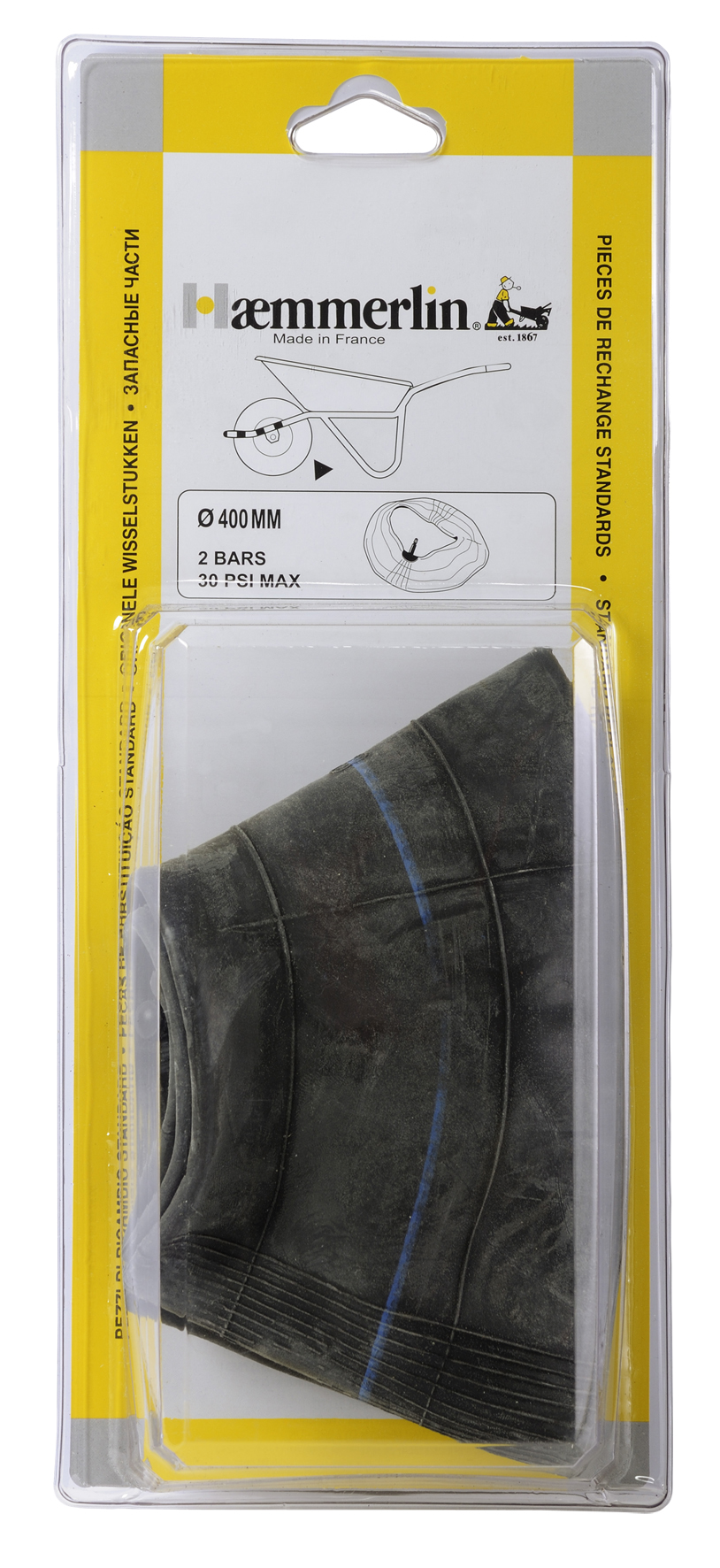La Chambre à air Haemmerlin Ø 400 mm est un accessoire essentiel pour garantir la performance de vos brouettes. Conçue spécifiquement pour les modèles de roues PF 150, PF 154 et PF 128, elle offre une solution fiable et durable pour vos travaux de manutention. Cette chambre à air se compose d'un caoutchouc de haute qualité, permettant ainsi une résistance accrue aux perforations et aux déformations. Sa conception optimisée s'adapte parfaitement à une large gamme de brouettes, assurant une pression et une performance optimales lors de l'utilisation. Que ce soit dans le secteur du jardinage, de la construction ou du bricolage, cette chambre à air est l'alliée incontournable des professionnels. Lors de l'installation, veillez à vérifier l’intégrité de votre roue pour un montage efficace et sans effort. En termes de caractéristiques techniques, elle dispose d'un diamètre de 400 mm, garantissant une compatibilité idéale avec divers modèles de brouettes. Pour maintenir la longévité de votre chambre à air, il est conseillé de vérifier régulièrement la pression et de remplacer le produit dès les premiers signes d'usure. Pensez également à avoir à votre disposition les outils nécessaires pour faciliter son remplacement. Optez pour la Chambre à air Haemmerlin Ø 400 mm pour une maniabilité améliorée et une diminution des pannes, contribuant ainsi à optimiser votre temps et votre efficacité sur le chantier. Avec la référence fournisseur 309003306, cette chambre à air incarne la fiabilité et la robustesse que vous recherchez pour vos équipements de manutention.