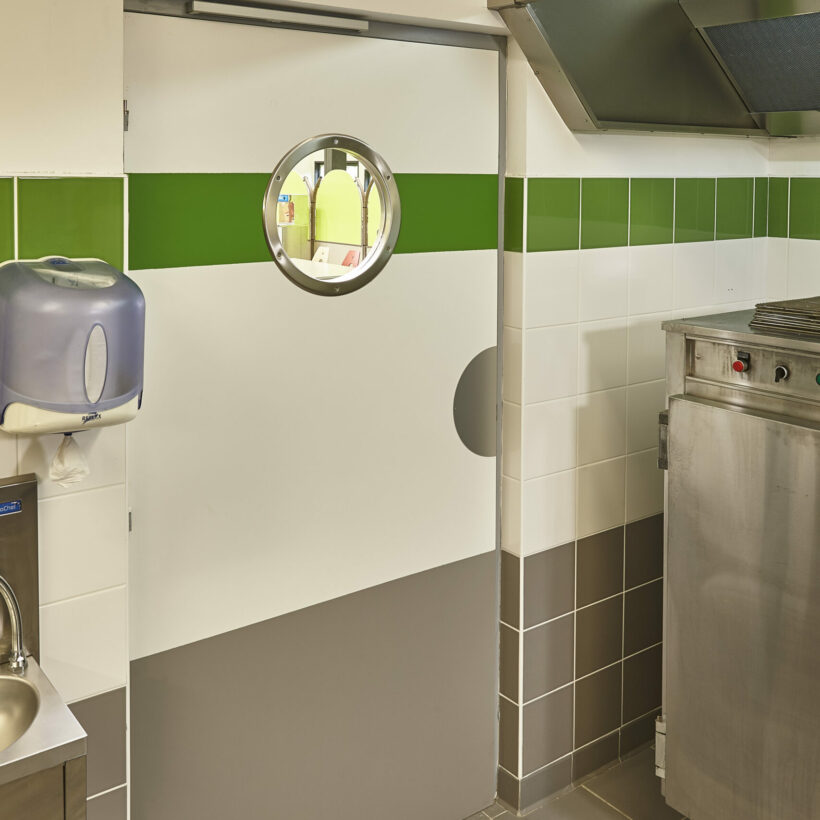 - Hublot en métal conçu pour optimiser la lumière naturelle.