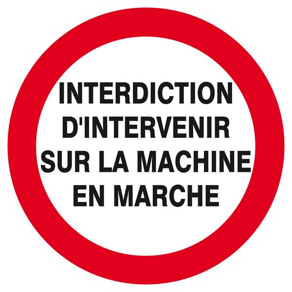 Panneau rigide INTERDIT D'INTERVENIR SUR MACHINE EN MARCHE D.300mm TALIAPLAST - 622229