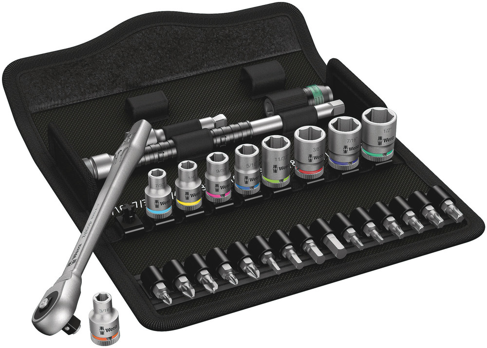 Jeu cliquet Metal avec carré mâle traversant, à carré 1/4", syst. impérial 8100 SA 10 WERA - 05004020001