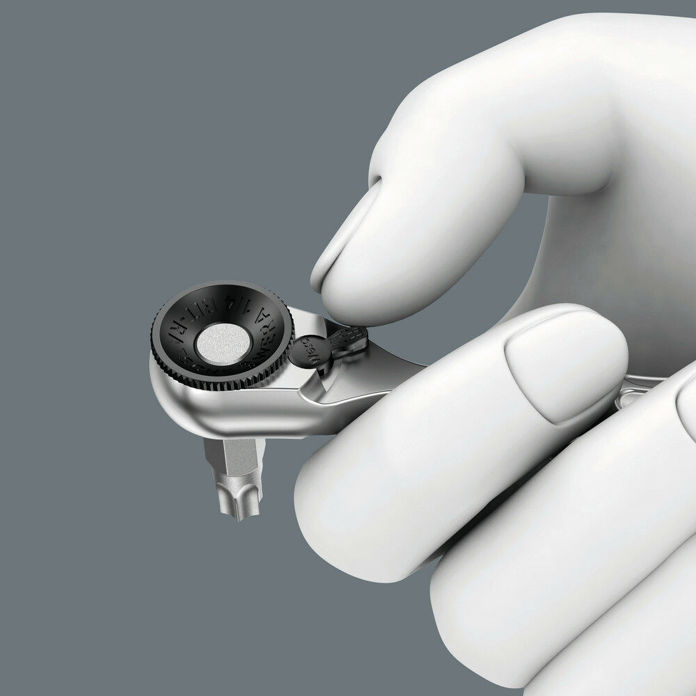 Porte-embouts haut de gamme avec manche Kraftform Plus favorisant l'ergonomie au travail. Cliquet à embout pour travailler rapidement quand le vissage avec une machine ou un outil manuel conventionnel est impossible faute de place. Inversion rapide du sens de serrage, de gauche à droite et inversement, grâce au levier d'inversion. Rotation rapide (avec le pouce) par la molette sur la tête de cliquet. Utilisation très facile même avec une seule main. Manche/tête de cliquet ergonomiques : la géométrie Kraftform offre des surfaces d'appui morphologiquement parfaites pour les doigts. L'admission directe des embouts dans la tête du cliquet permet d'obtenir un mini-outil idéal pour les hauteurs de travail réduites. Faible angle de reprise de 6° pour un travail précis. Exécution robuste en acier massif forgé. Couples de plus de 65 Nm. Porte-embouts Rapidaptor avec bague de rotation rapide : utilisable comme rallonge, pour le changement ultrarapide des embouts, même les plus petits calibres, sans outil auxiliaire et d'une seule main.