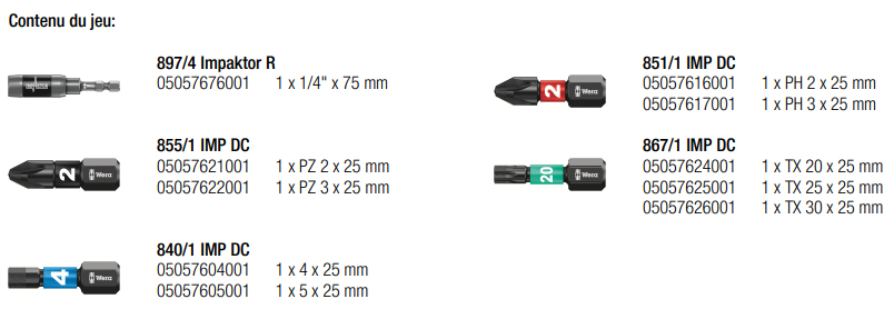 Découvrez Jeu d'embouts de vissage WERA 10 pièces 5057680001 disponible à l'achat