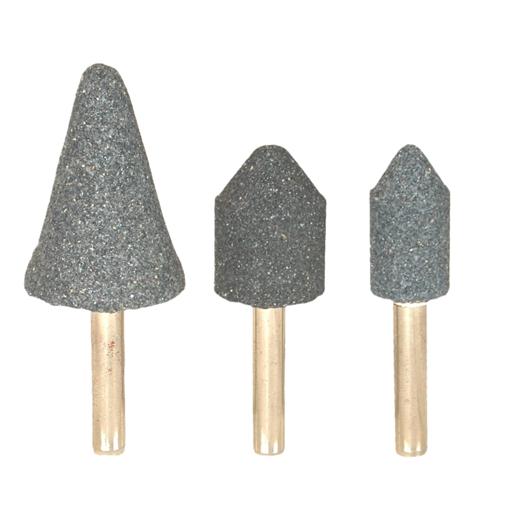 Jeu de 3 meules sur tige - tige ø6mm, meule en oxyde d'aluminium, compatible meuleuse droite LACME - 377202