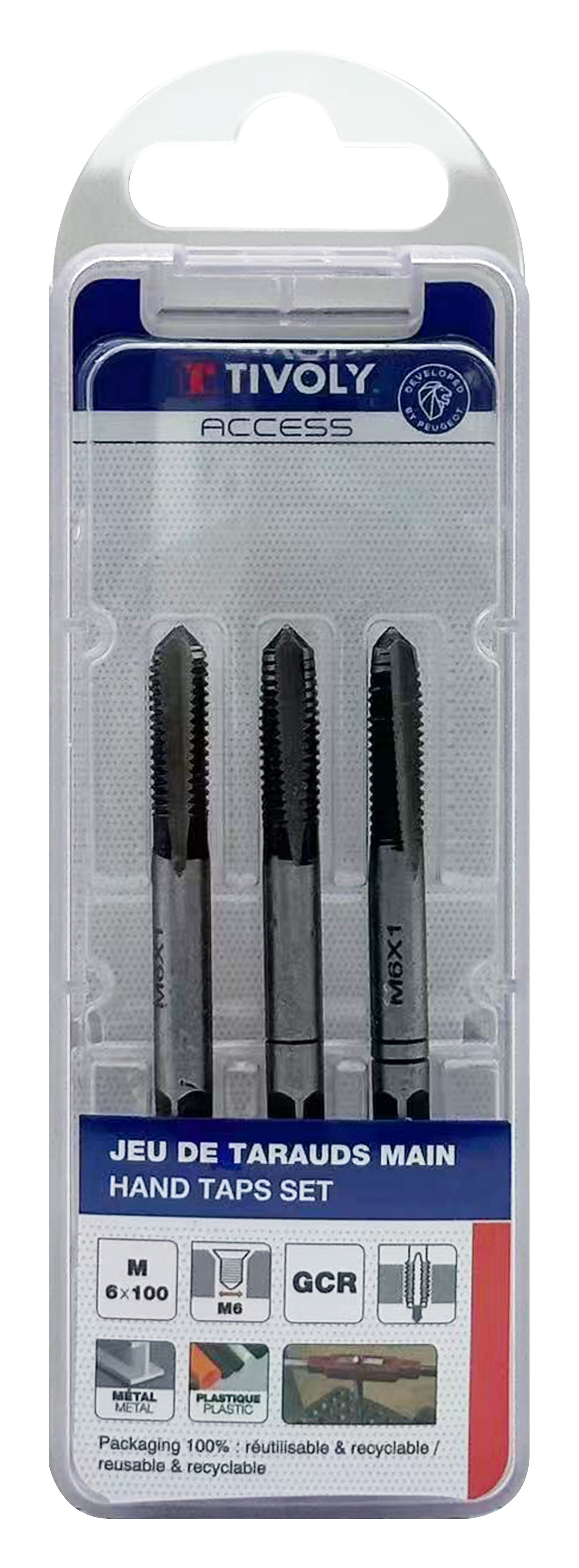 Jeu de 3 tarauds main -M -Acier au Chrome (Blister) / Ø: 6 X 1 TIVOLY - 1050012060100
