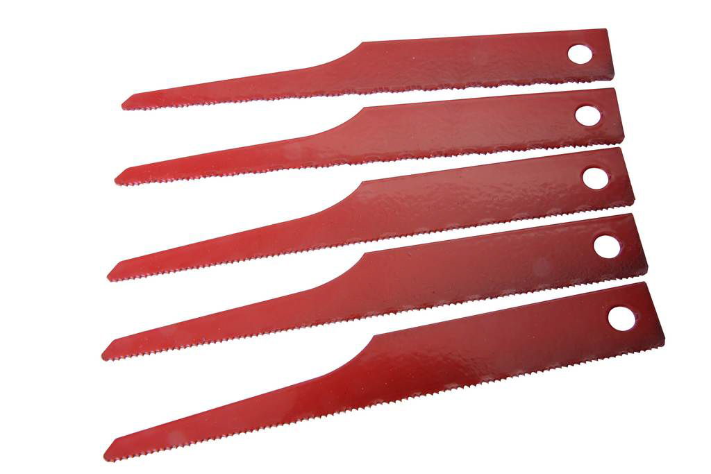 - Jeu de 5 lames de scie pour utilisation avec scie droite.