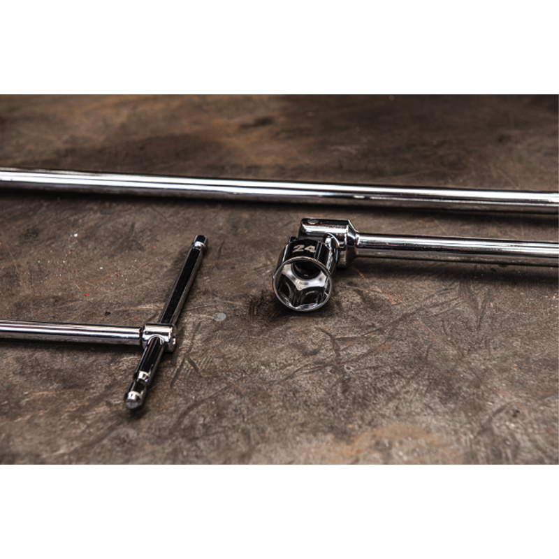 Jeu de 7 clés à douille en T avec articulation universelle, conçu pour offrir une polyvalence et une accessibilité accrues lors du serrage ou du desserrage de boulons dans des espaces restreints. Chaque clé est équipée d'une poignée en T ergonomique pour une prise en main confortable et un couple de rotation optimisé. L'ensemble comprend des douilles de tailles variées pour s'adapter à diverses applications, garantissant ainsi une solution complète pour les travaux de mécanique.