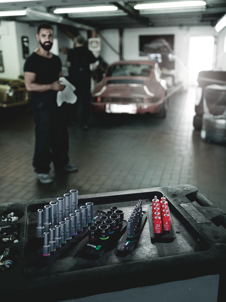 Le système "Take it easy" utilise un code couleur associé à chaque taille de douille, ce qui permet de repérer rapidement et facilement l’outil nécessaire, même dans des conditions de travail avec les mains grasses.