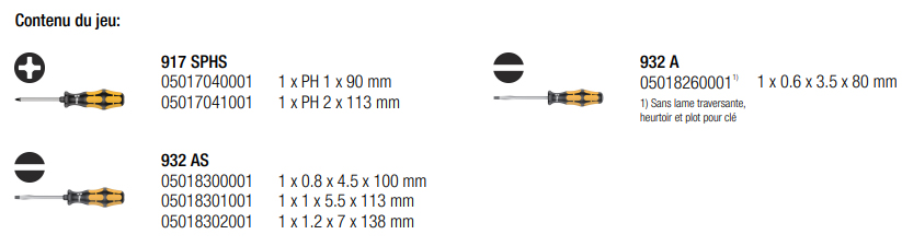 3x 932 AS Tournevis pour vis à fente: 0.8x4.5x100 mm, 1x5.5x113 mm, 1.2x7x138 mm