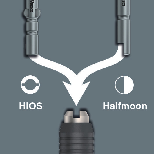 Convient pour l'admission d'embouts à emmanchement Halfmoon 4 mm (série 9 Wera) et à emmanchement HIOS 4 mm (série 21 Wera)